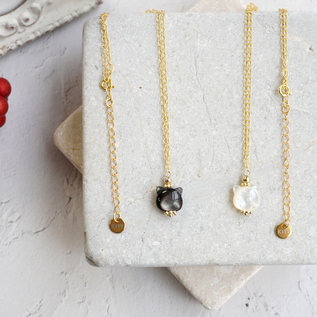 白猫ネックレス 黒猫ネックレス マザーオブパールのネックレス*KITT bijou