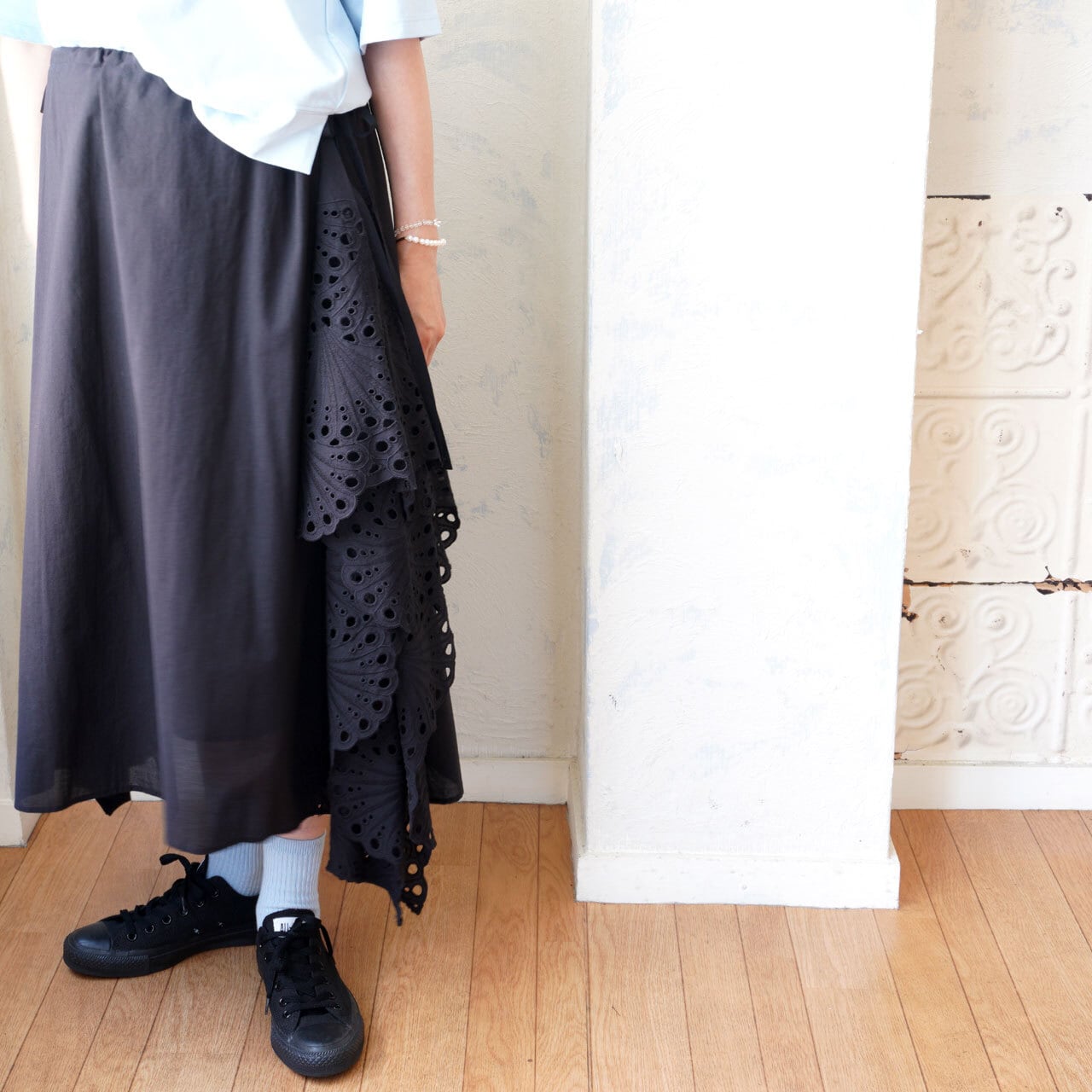 スカラップレースのギャザースカート。
