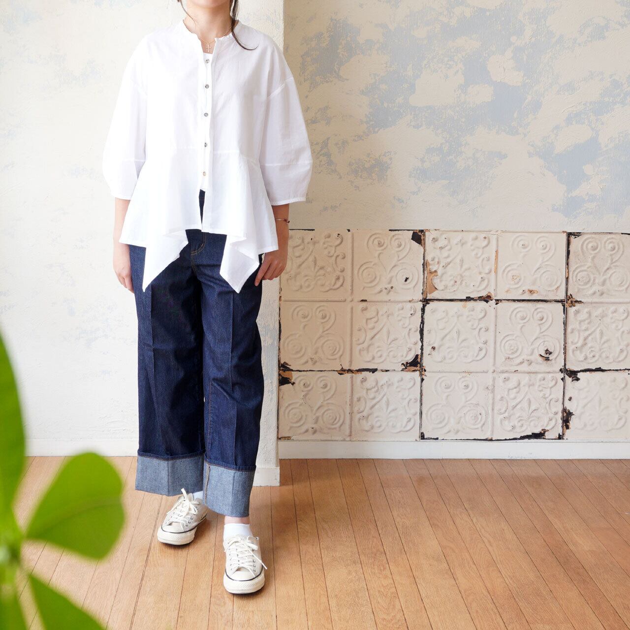 オーガニックコットン・イレギュラーペプラム・ブラウス *プラネード