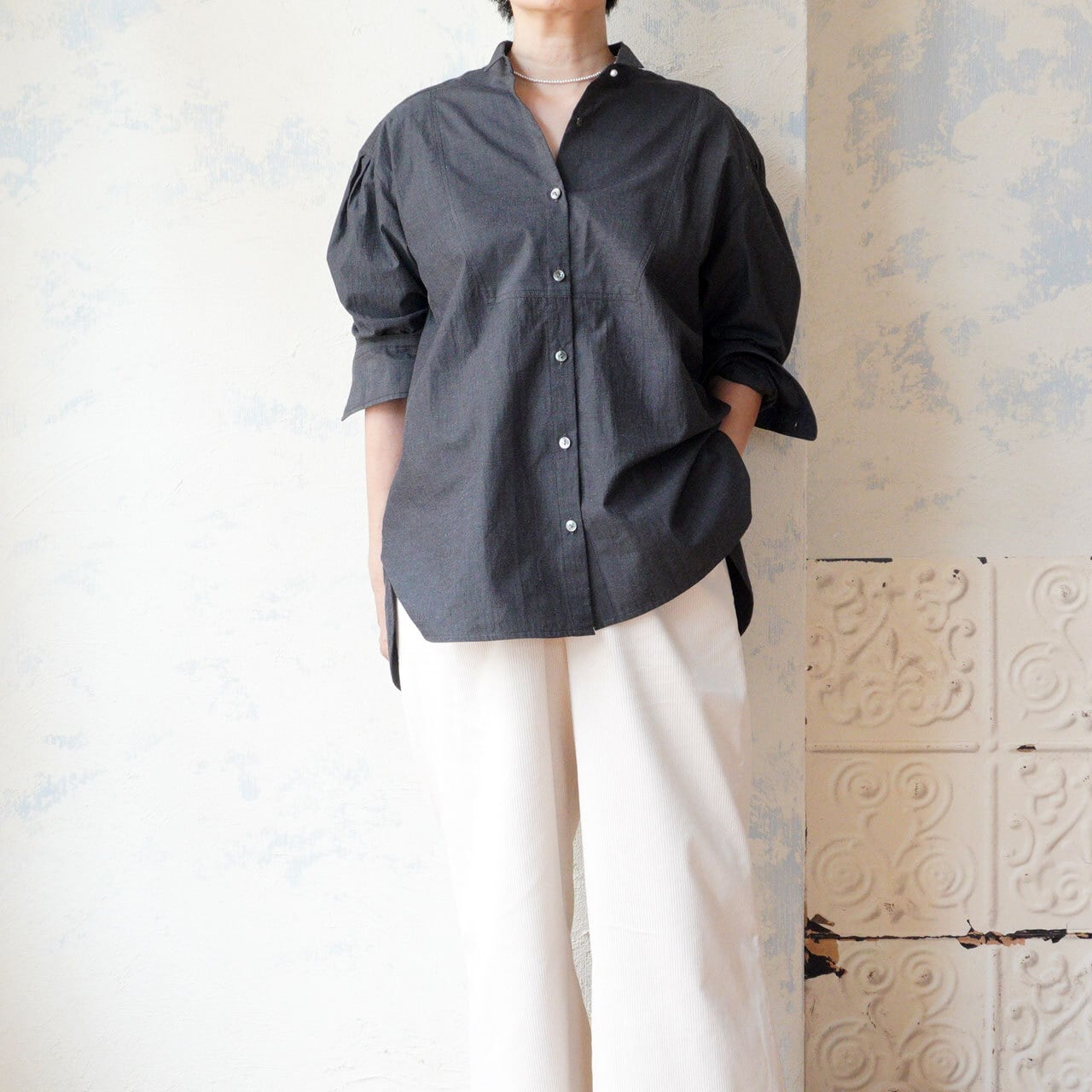 リラックスサイズのシャツ。